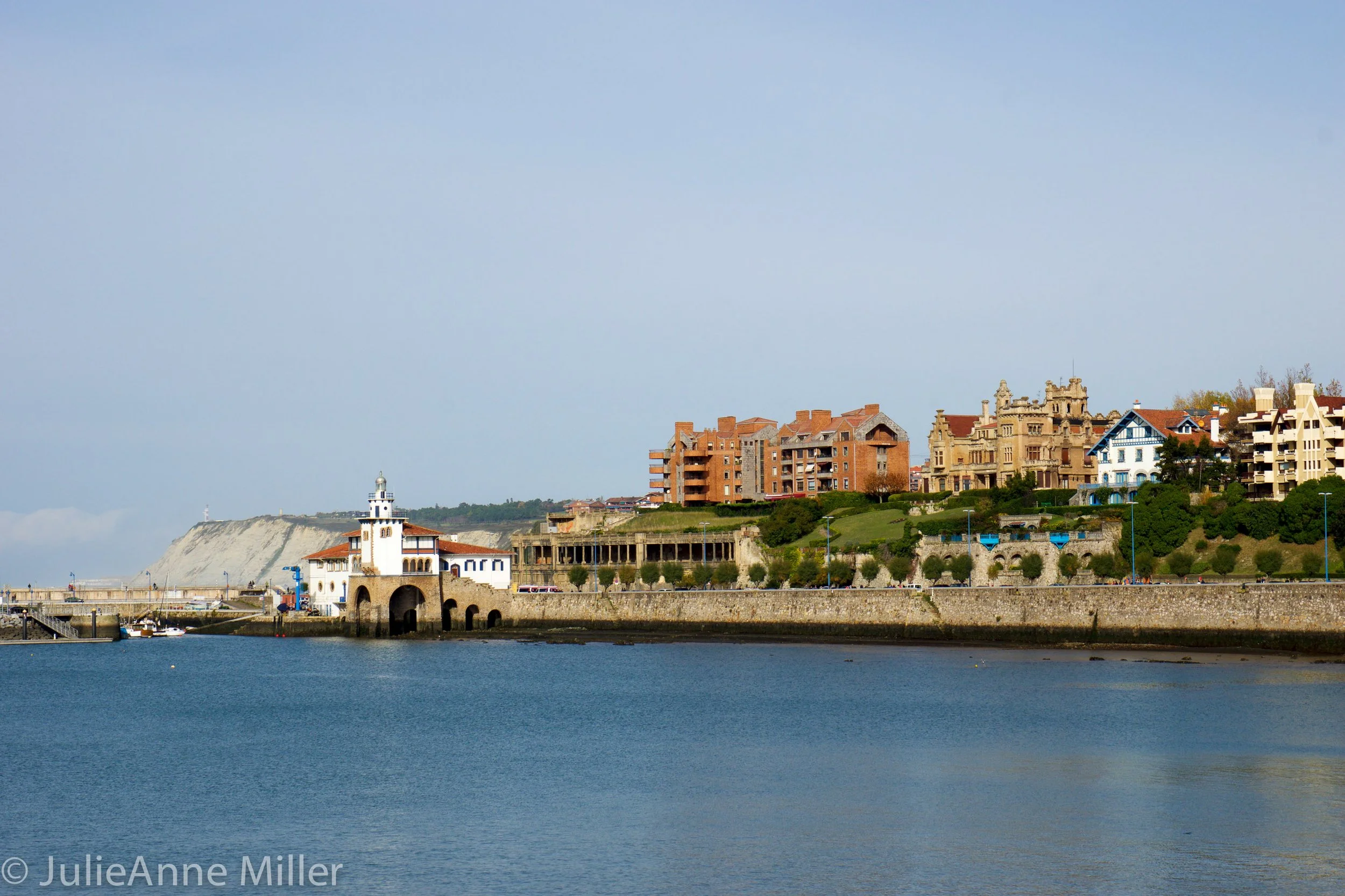 It’s early the next morning. I set out for what I tell myself will be a “short” walk in Getxo following a gentle stretch of rolling green landscape along the Basque coast. My destination is a solitary windmill, its white form stark against the blue sky. Breathing in the salty sea spray, I rest nearby the windmill atop a cliff that drops sharply into churning water, listening to the sea gulls and the crash of waves. I intend to head back, but a cobblestone lane through a rustic neighborhood takes me in another direction. I end up at the remains of an ancient fort-turned-skateboard-park in a modern day resort. It’s still morning; I have encountered barely a soul.