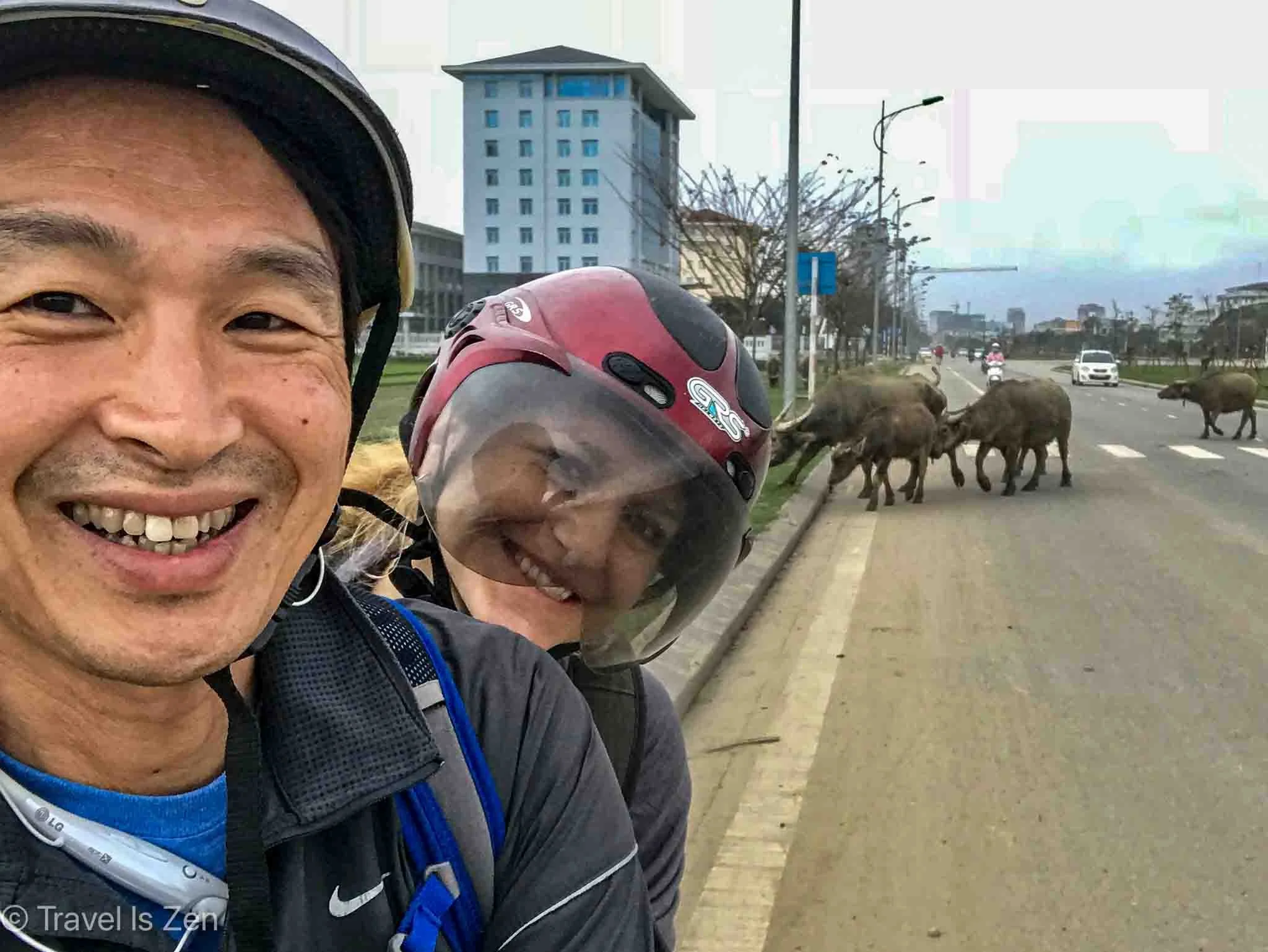 Today, Hue is a small but modern city straddling the Perfume River, with wide avenues and landscaped parks dotted with sculptures, topiaries and flower gardens. Sidewalks and bridges are walk-able, making it easy to explore. This area of the country is strongly Buddhist; there are many temples and excellent vegetarian restaurants. Since the traffic is less scary here than Hanoi, we rented a scooter and enjoyed simply cruising around the rural countryside on the outskirts of Hue.