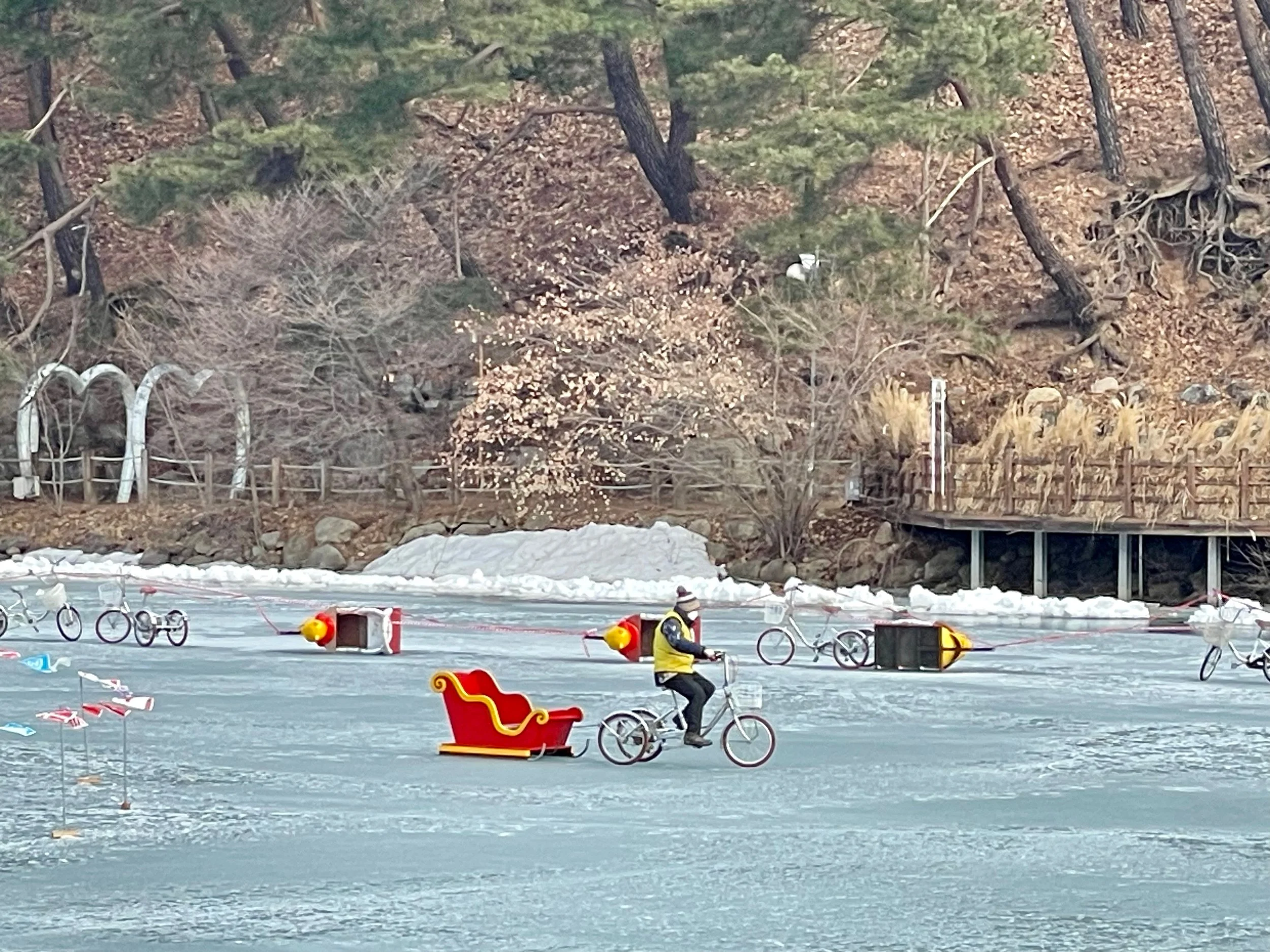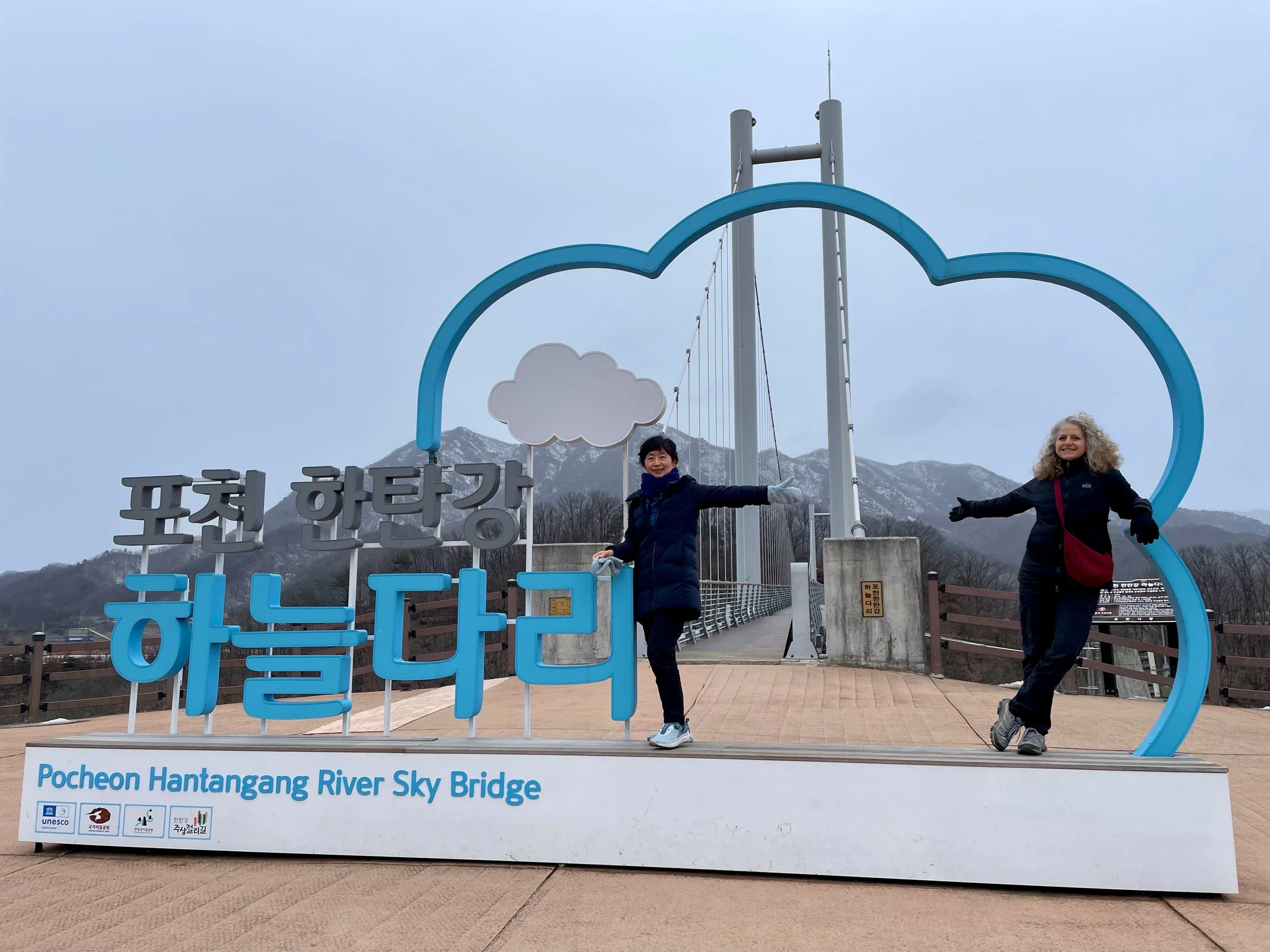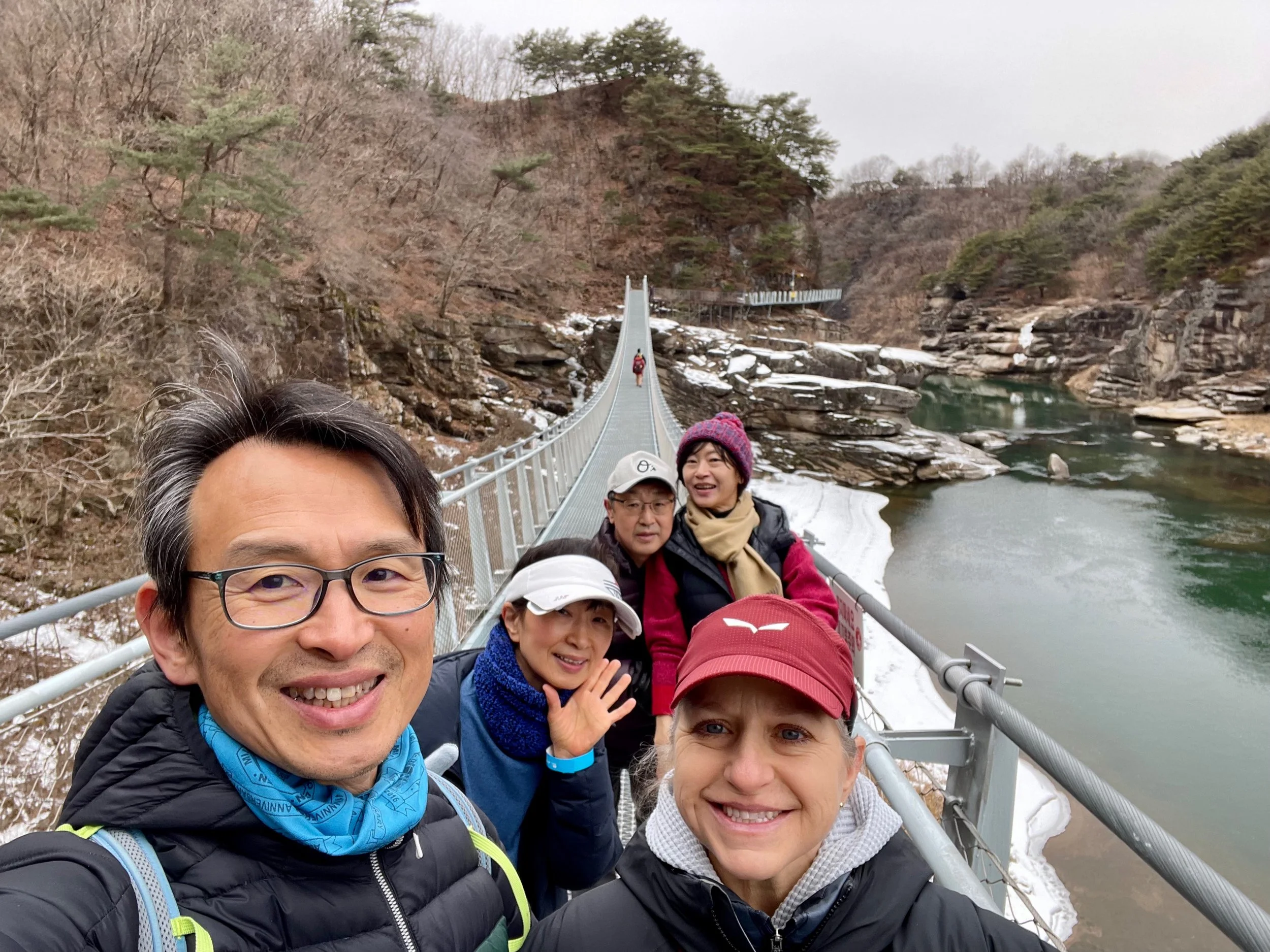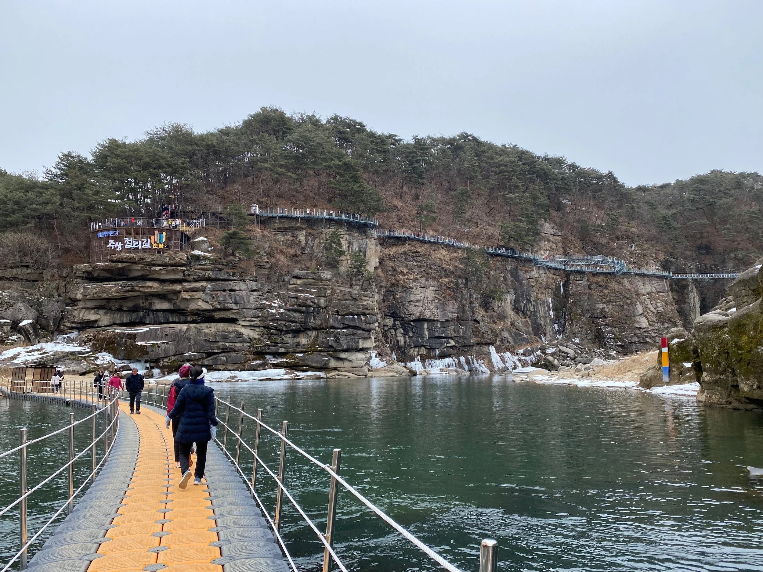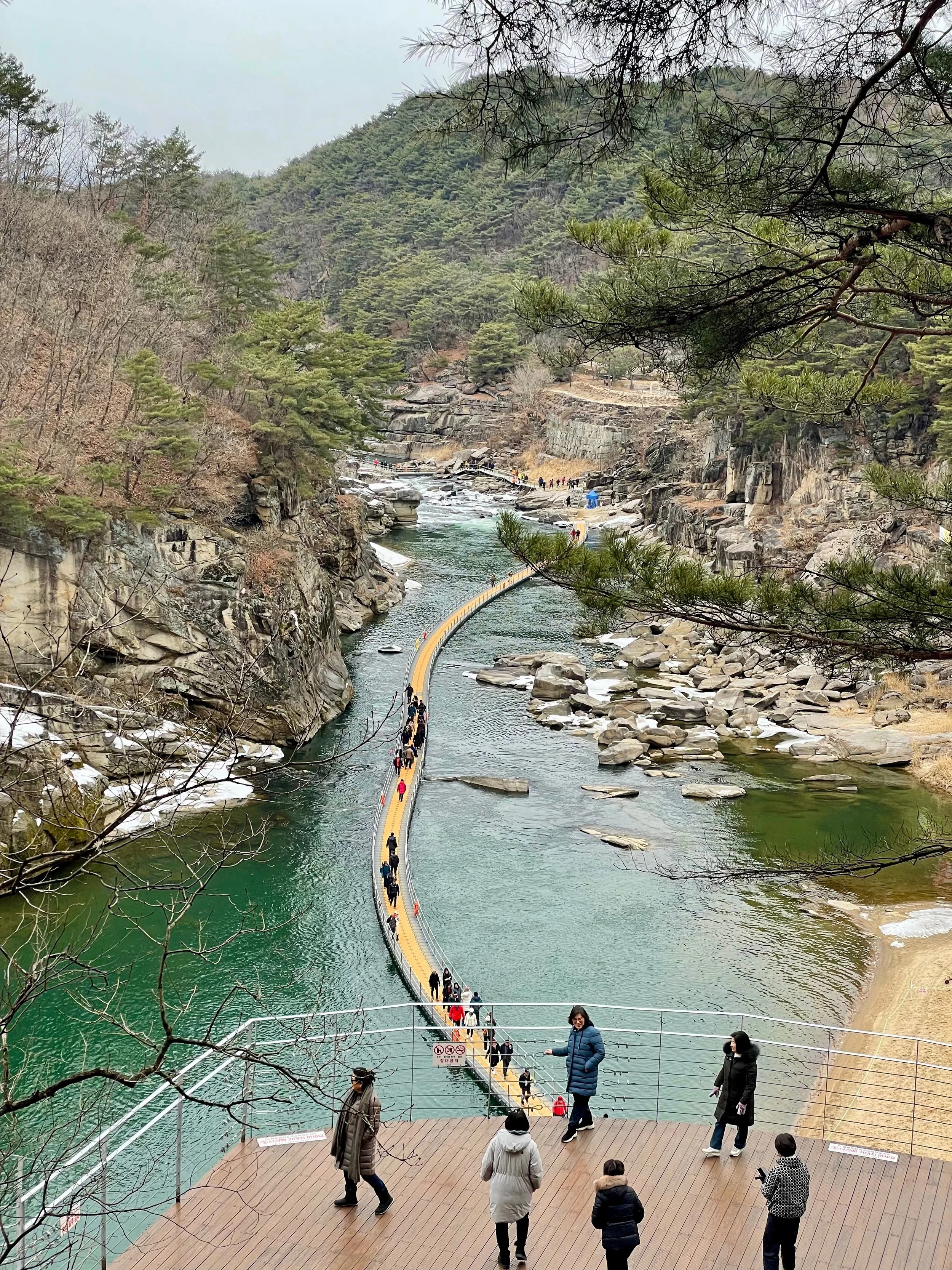As an initial get-away from the Seoul, we did a road trip with Korean family to Pocheon (포천) to walk the “river and cliff trail” and see the unique volcanic-era geological formations and mineral springs. It was festive and fun — and cold!