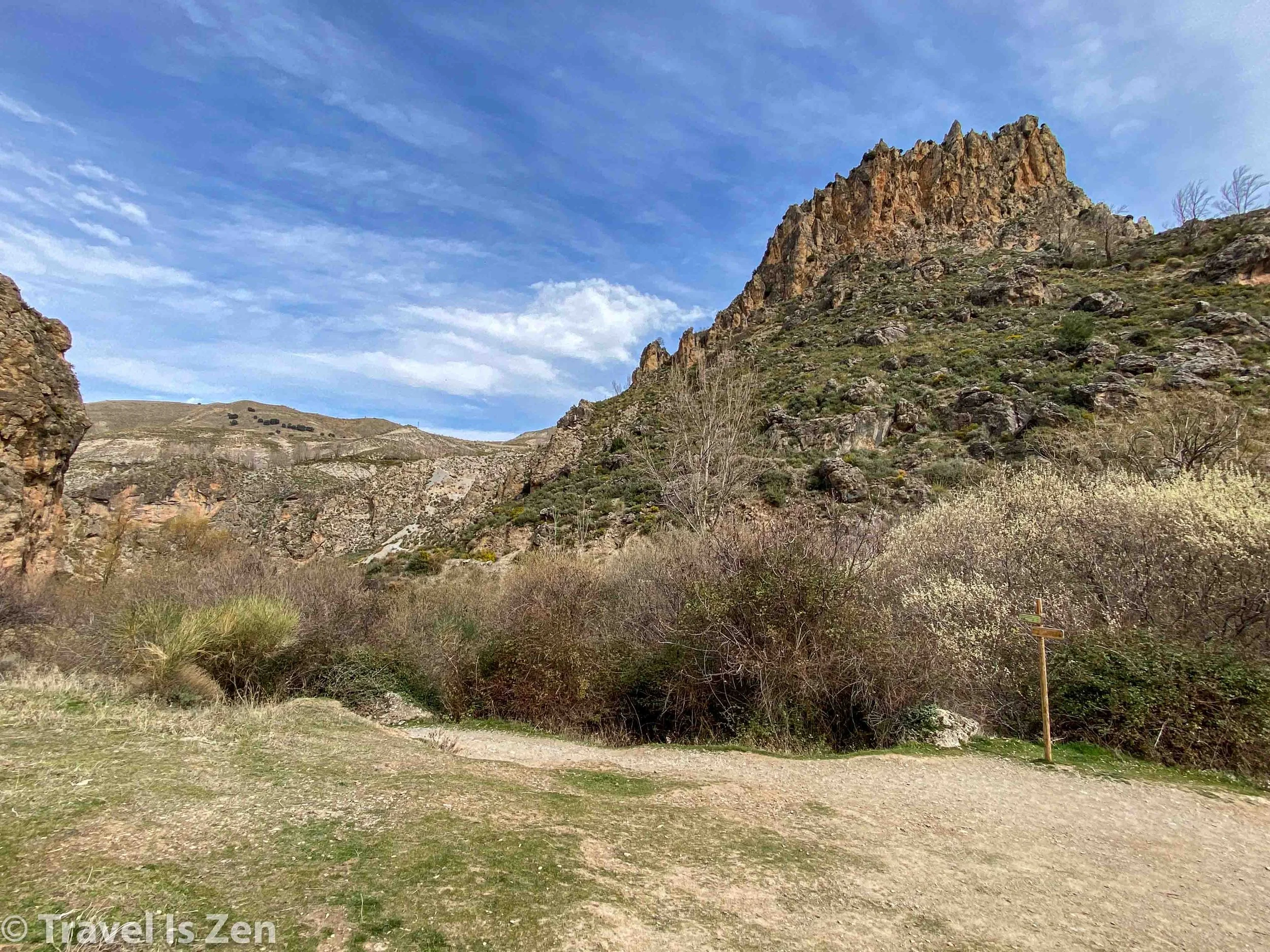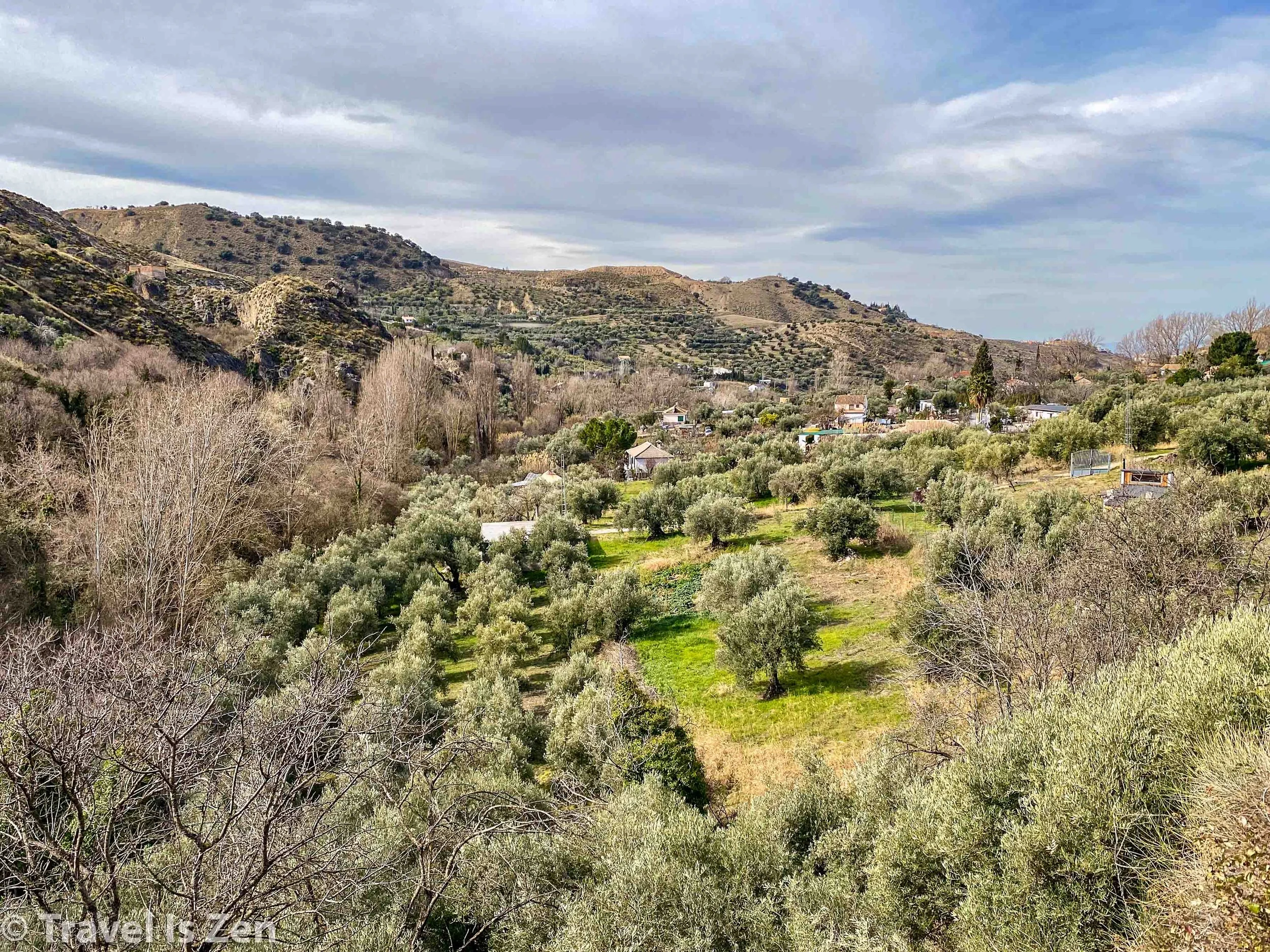 The next day, we followed the Sendero de las Palomas up into the dry, scrubby hills dotted with hearty juniper, wild rosemary, and broom bushes. This trail had an “Arizona” feel, with red sandstone, golden hued grasses, and sage greens vibrant against a blue sky. The Sendero de las Palomas was a steeper, longer and more aggressive hike, which climbed into the olive groves and stockyards above Monachil for a fantastic birds-eye view. Granada was just a few kilometers away, sprawled across the distant horizon. Our route was about 6 miles and took us 2 hours; there are lots of interconnecting trails, though, to make longer (or shorter) hikes.