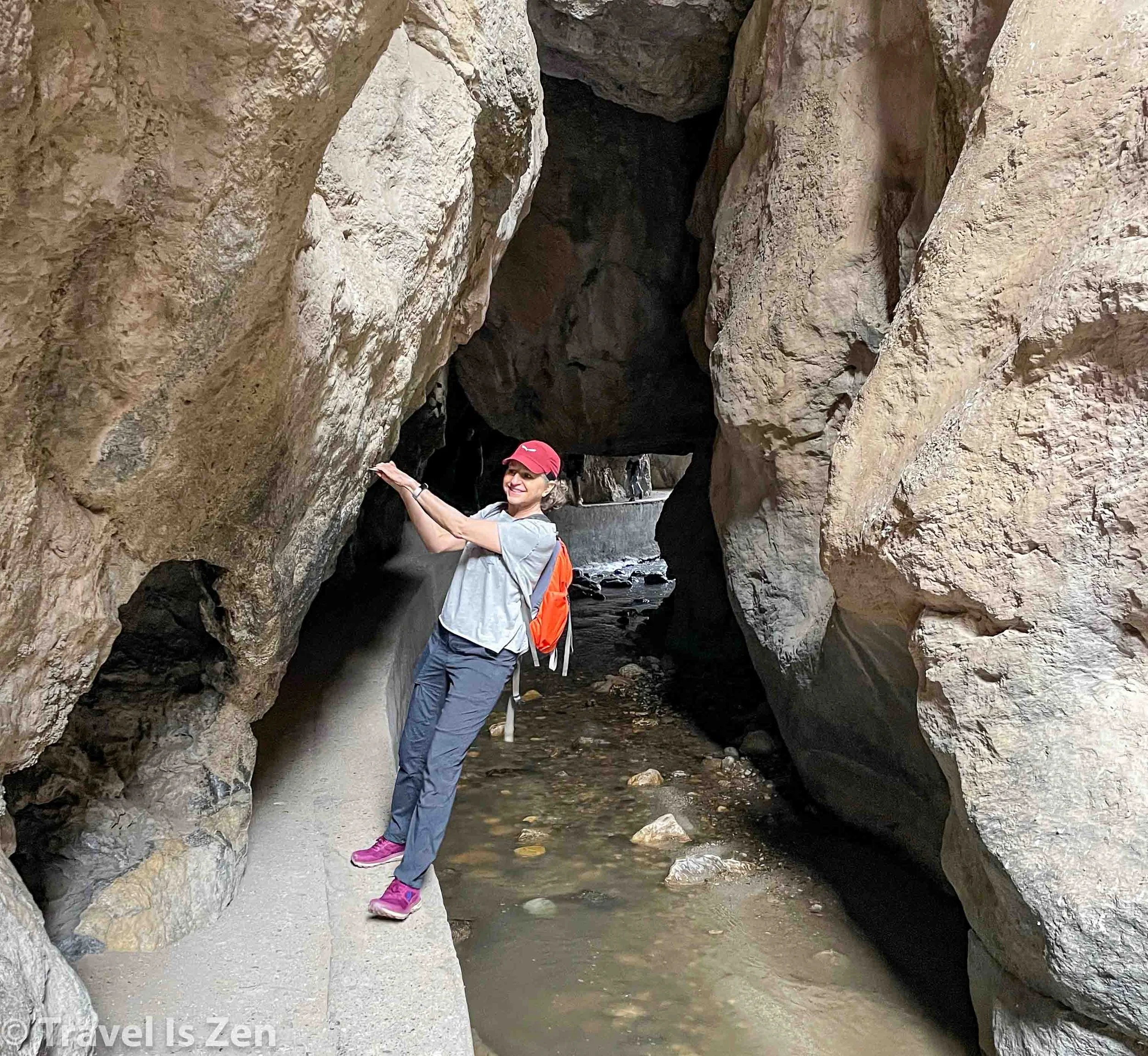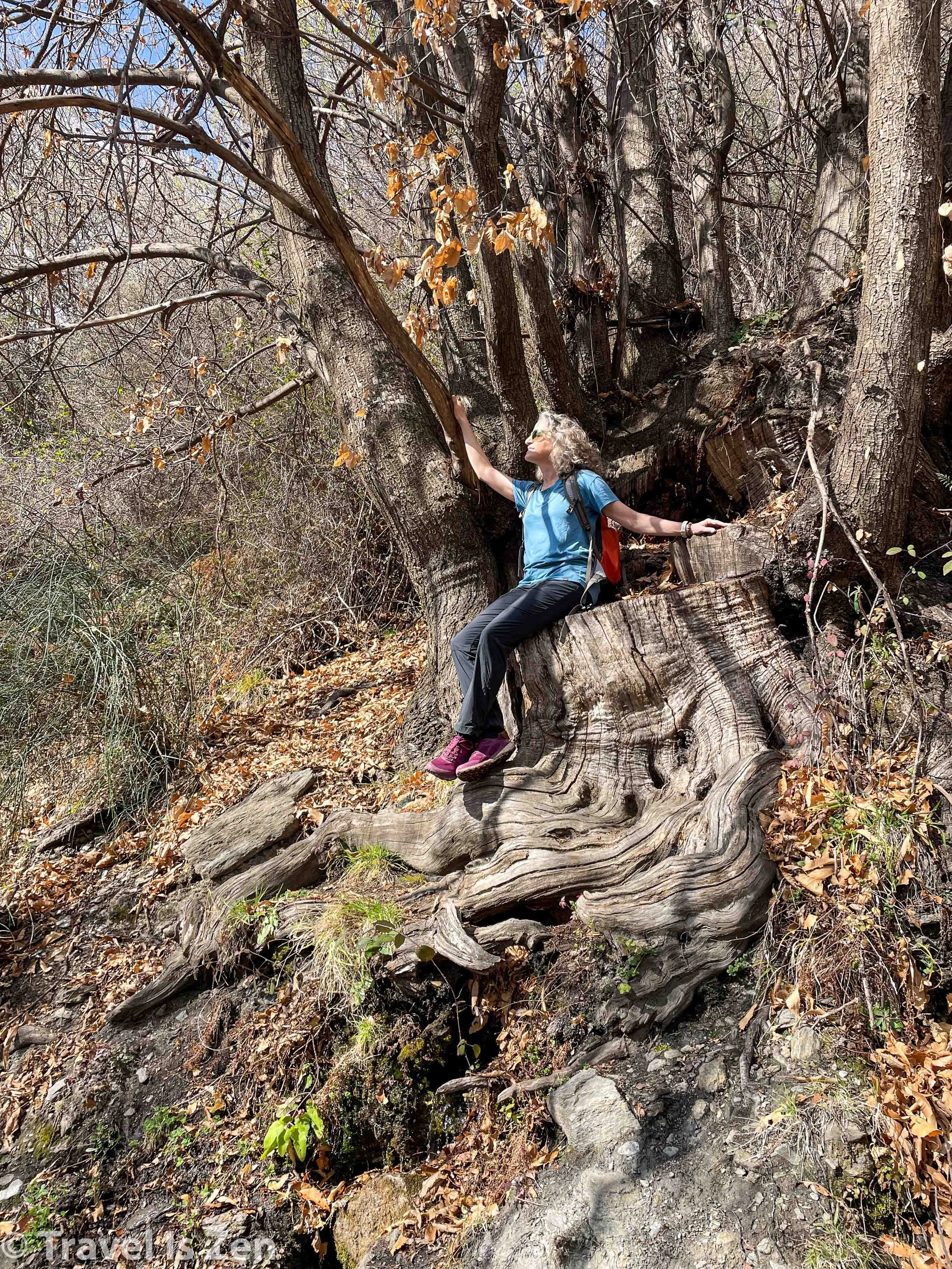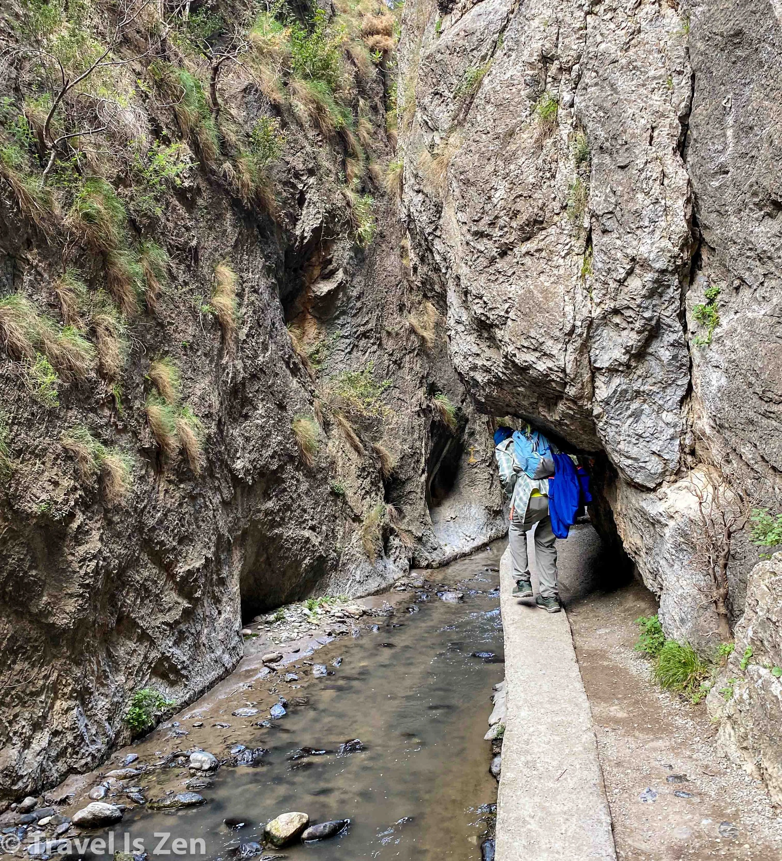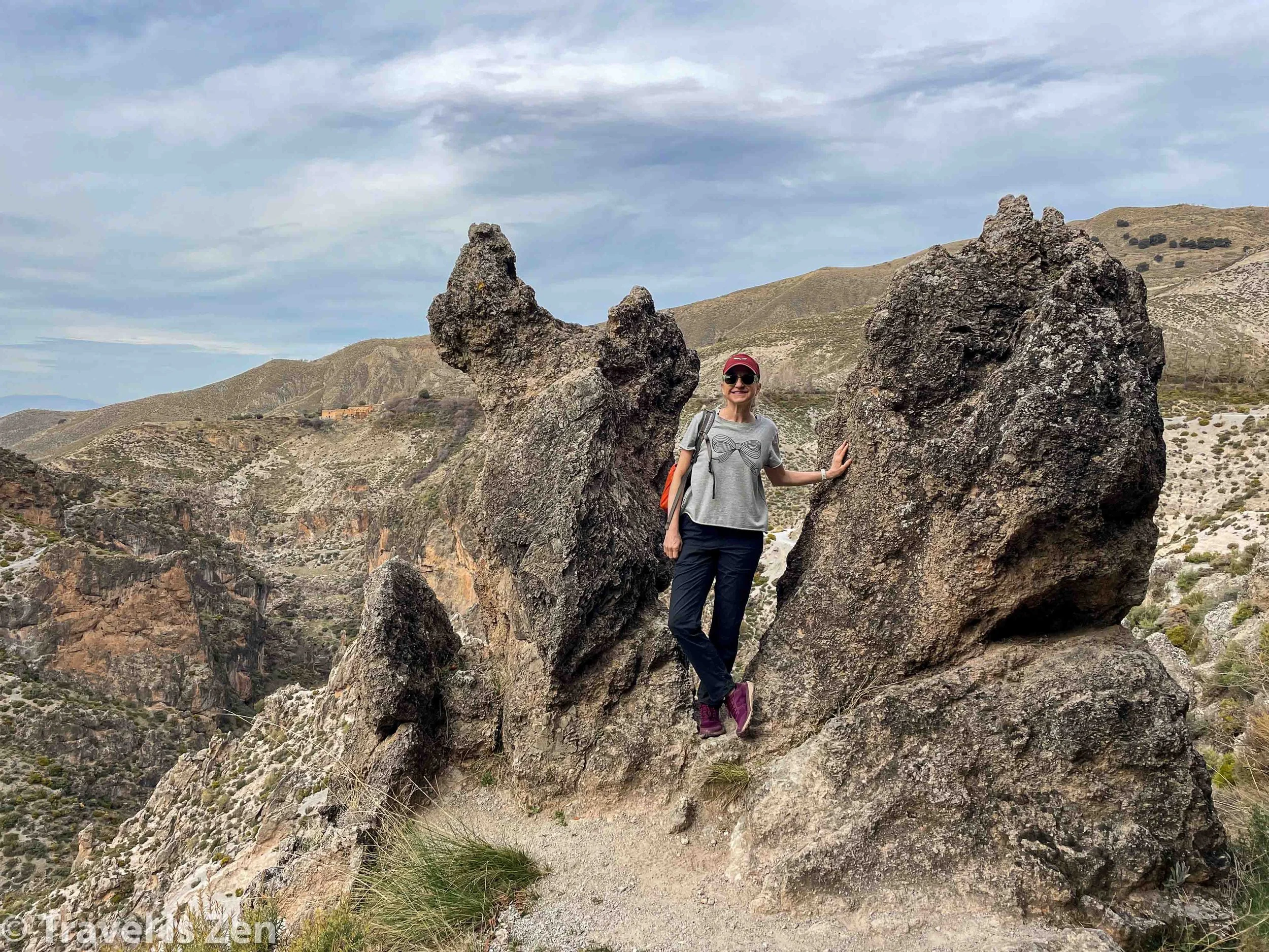 The next morning, we headed uphill and upstream to hike the trails in and around Los Cahorros gorge in Sierra Nevada National Park. The loop trail ambles along the limestone canyon up into the dusty foothills, criss-crossing the river over swinging bridges and dipping down riverside below sheer granite and limestone cliff walls popular with climbers.