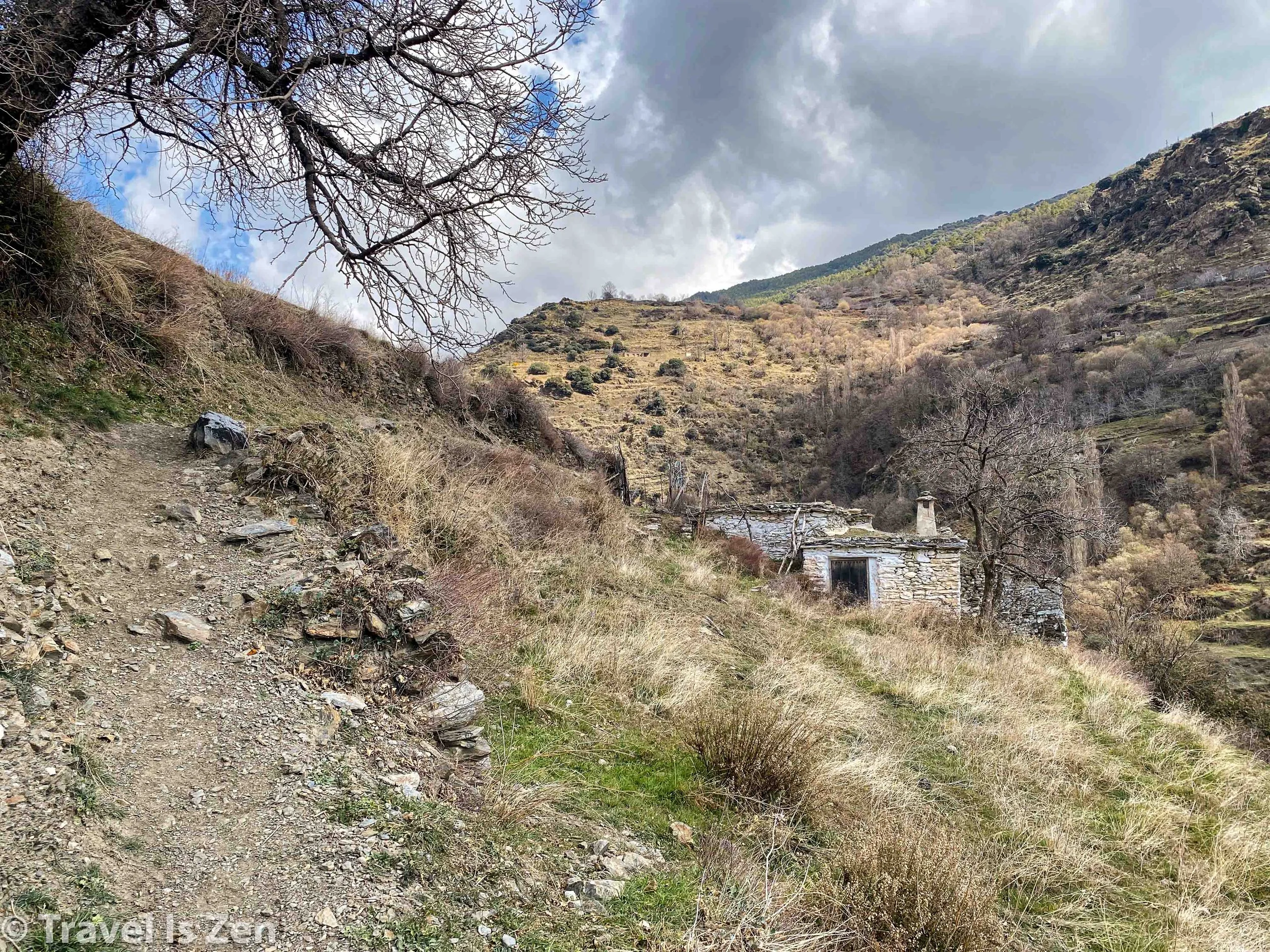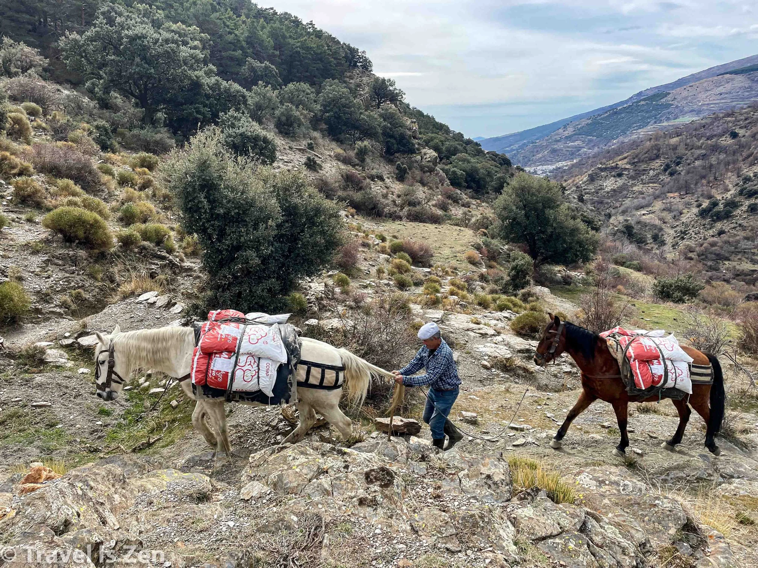 After our warm-up in Monachil, we were ready for some higher elevation. A local bus departed Monachil and switch-backed upwards through the Alpujarras, a string of white-washed villages stacked ever-higher and more-remotely up the southern Sierra slopes. The Alpujarras were built and populated by the Berbers of Northern Africa during Spain’s Islamic Al-Andalus era (AD 711 to 1492). Medieval-era water channels, or “acequias", still carry snowmelt from surrounding peaks down into terraced orchards first plowed under Islamic rule.