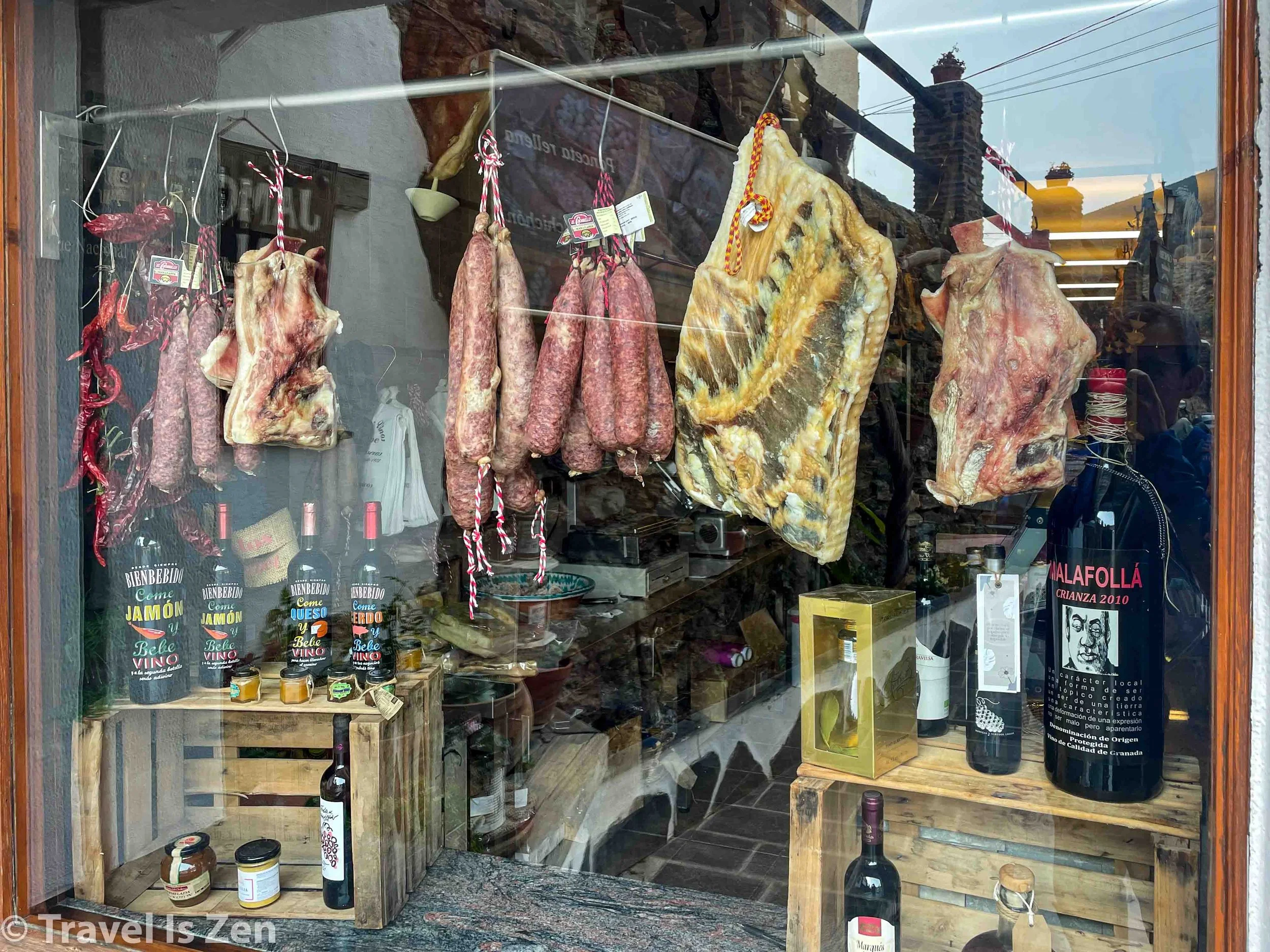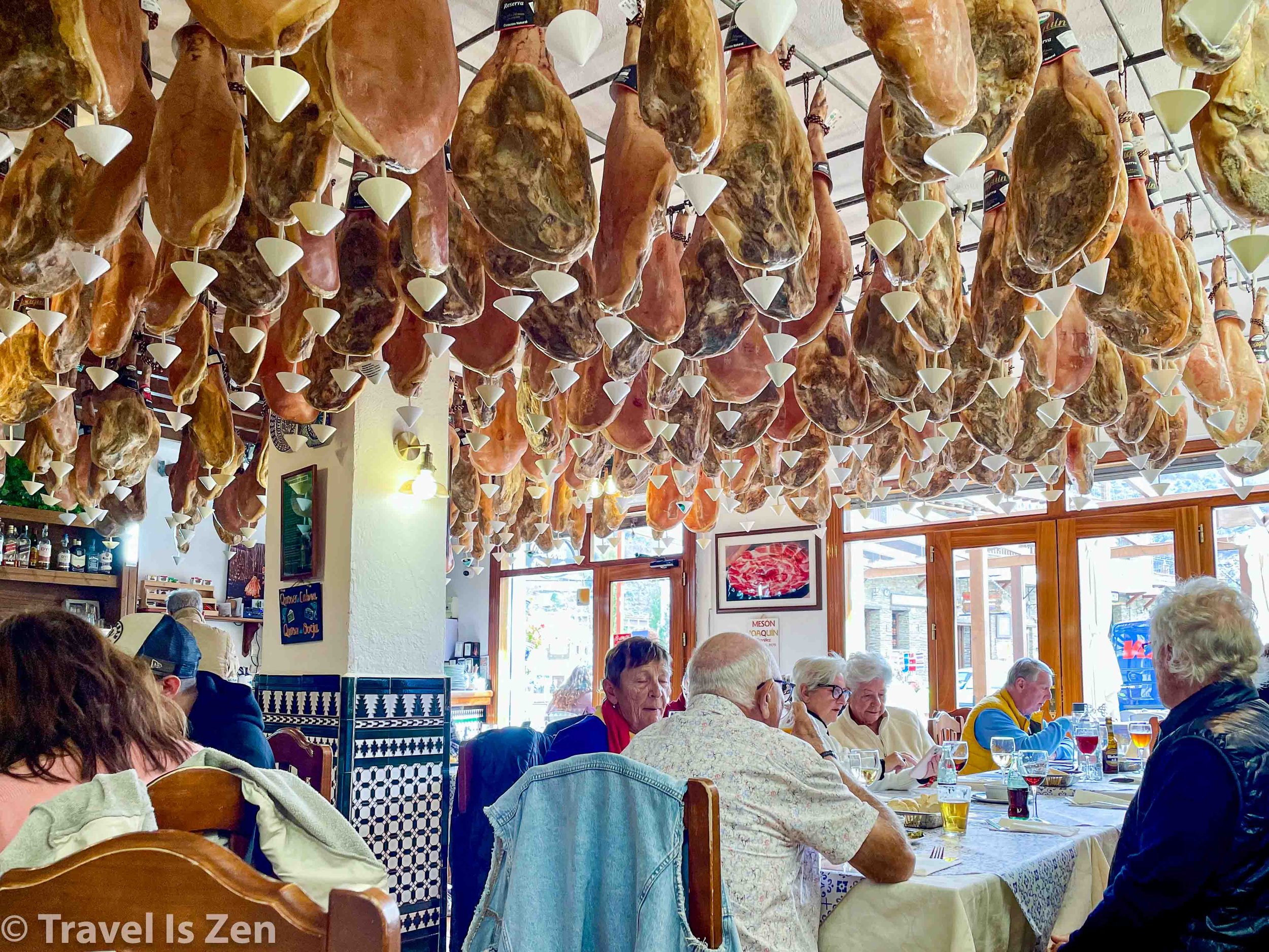 Our final destination in the Alpujarras was Trevélez, renowned for its sweet-tasting jamón serrano (cured ham). To say they take pride in their ham is an understatement one can only truly appreciate while eating beneath a ceiling of curing ham…