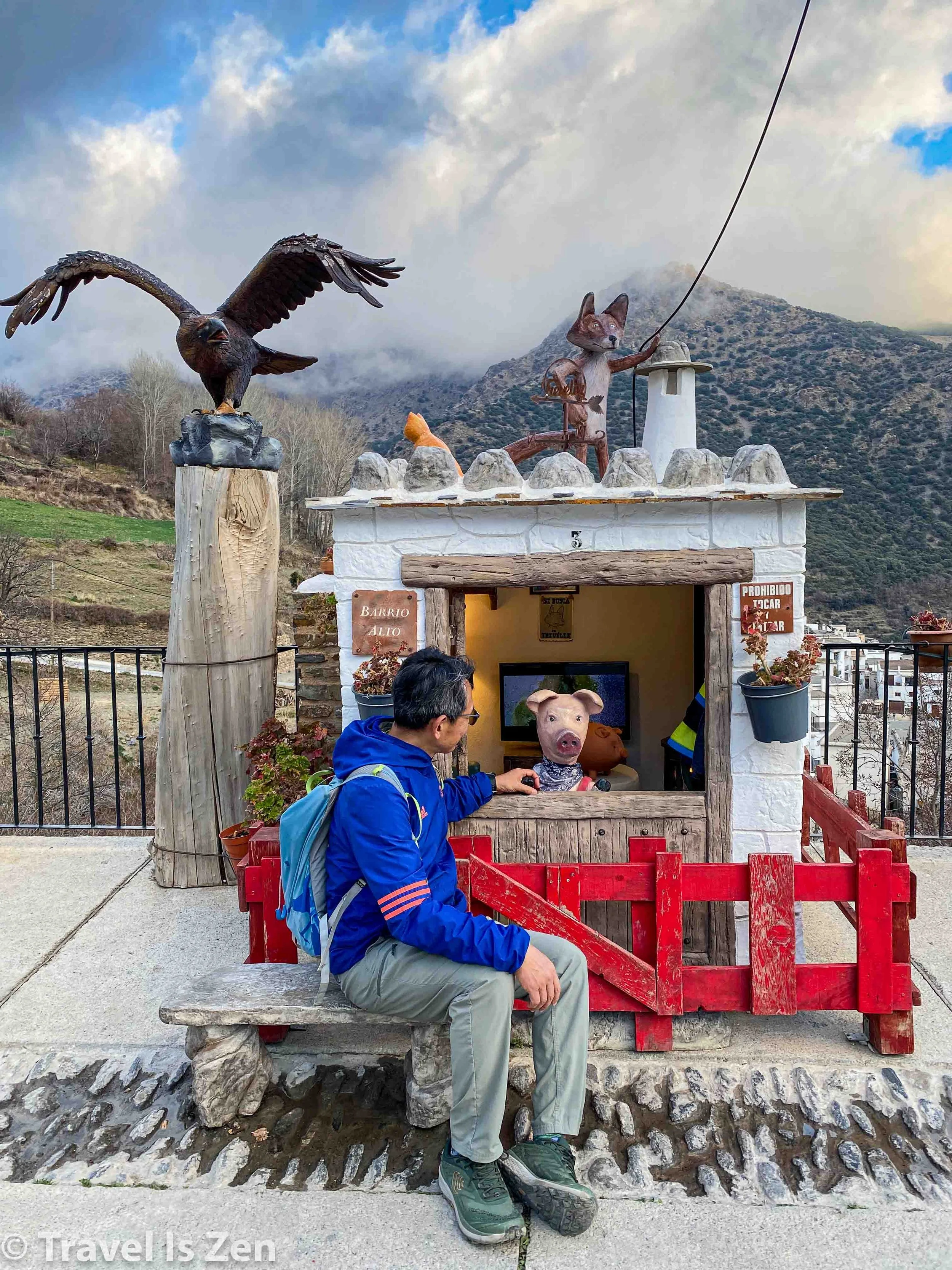 Trevélez is also the highest of the white mountain towns, with its Barrio Alto (upper neighborhood) positioned at 5,250 feet (almost 1,500 meters). The bus dropped us at mid-level in town, so we had to hoof it on foot up a truly-steep cobble stone path to our rented apartment in Barrio Alto. We were early for check-in, so we stowed our bags and kept on climbing up a set of stone stairs that eventually led to Mirador Era El Fuerte; “era” is a threshing floor, a community workspace for threshing grain. If you’re going to do some hard work, best to do it with a panoramic view!