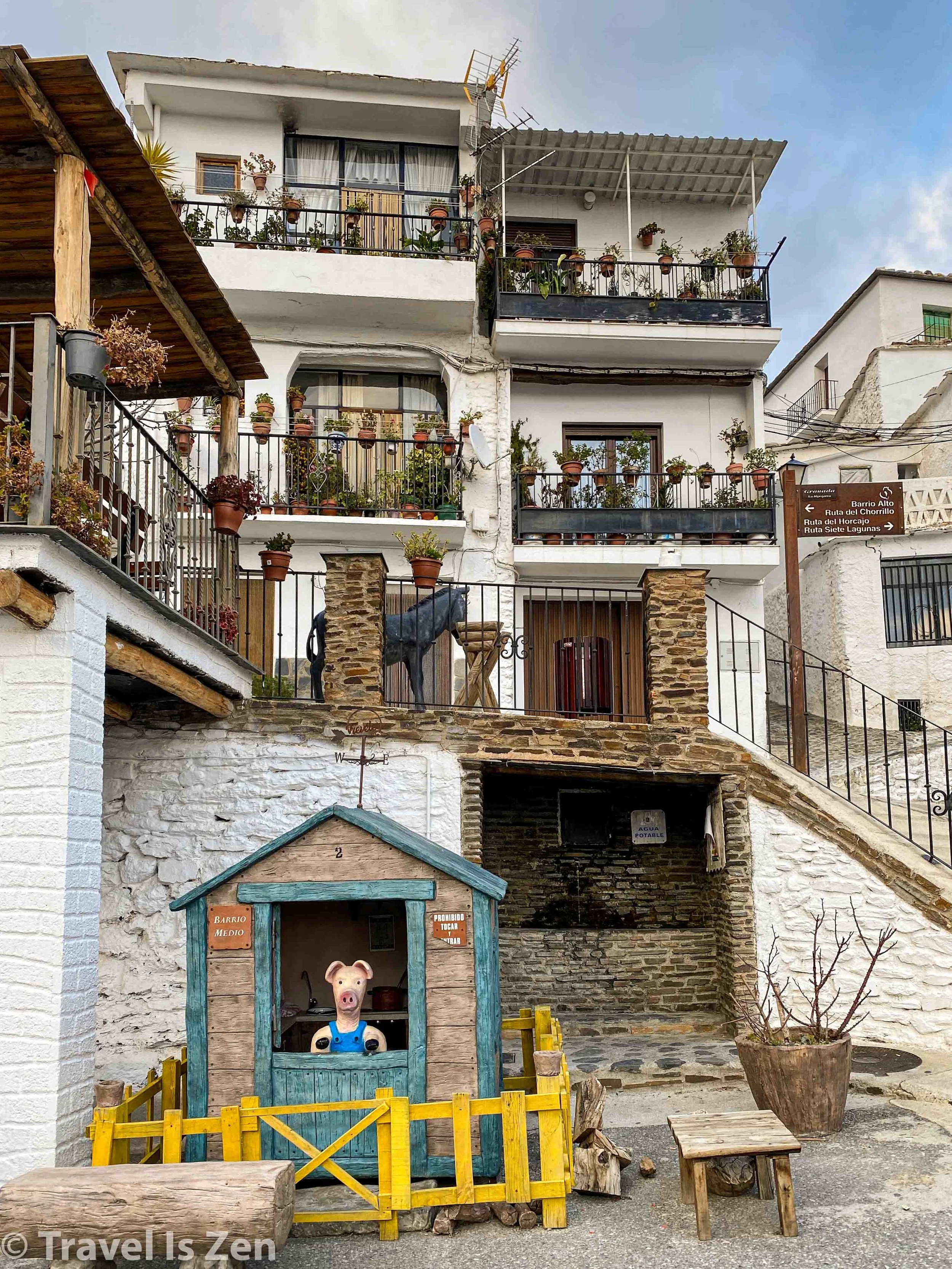 It was late afternoon and the town of Bubion was cast in an inviting golden hue. We decided to stretch our legs with an exploratory stroll to Pampaneira, about a half mile up the mountain. The main road has several miradors with sweeping views of the valley, the cascading White Towns, and — far off in the distance, eyes squinting — a few sparkles suggesting the bounce of light off the Mediterranean.
